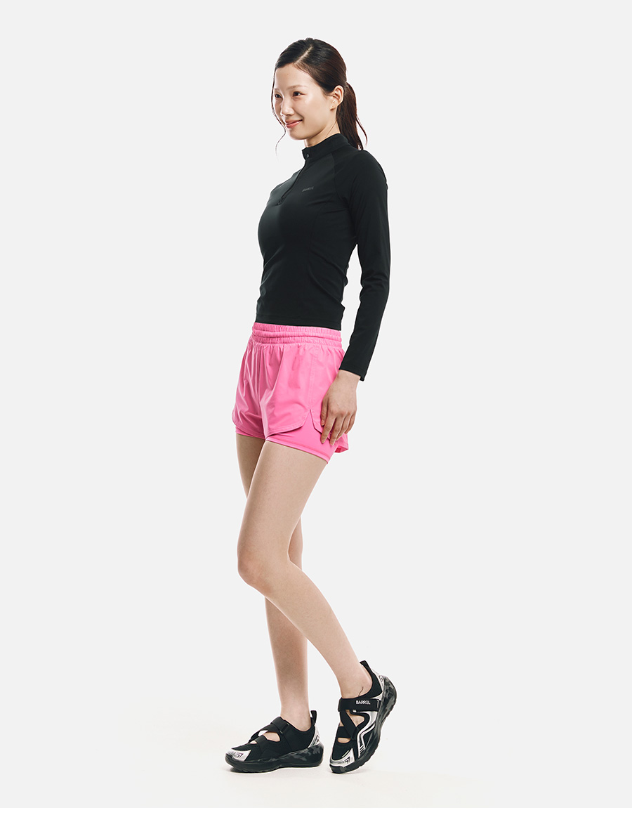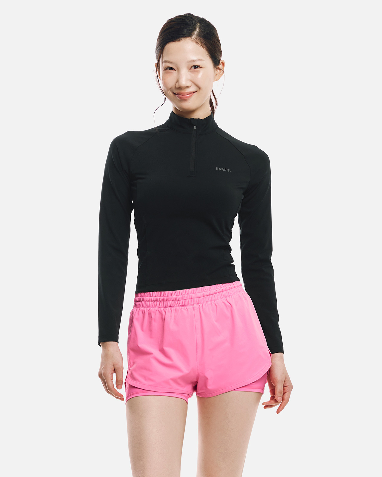우먼 에센셜 하프 집업 크롭 래쉬가드