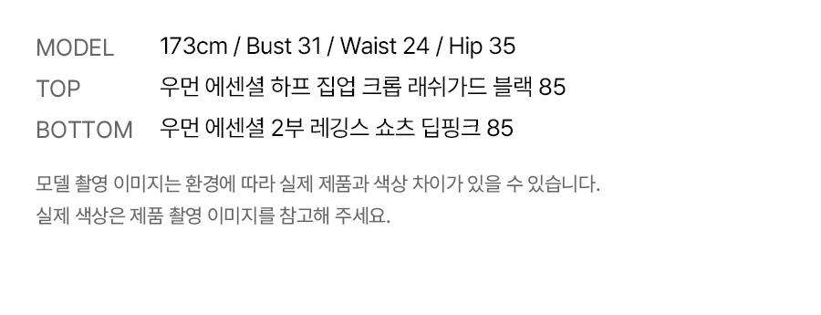 • 신축성 있는 제품 (탱크탑, 브라탑, 브라패드, 레깅스, 비키니, 비키니팬츠, 이너웨어) 은 시착 시 상품의 가치가 훼손되어 반품이 불가합니다.