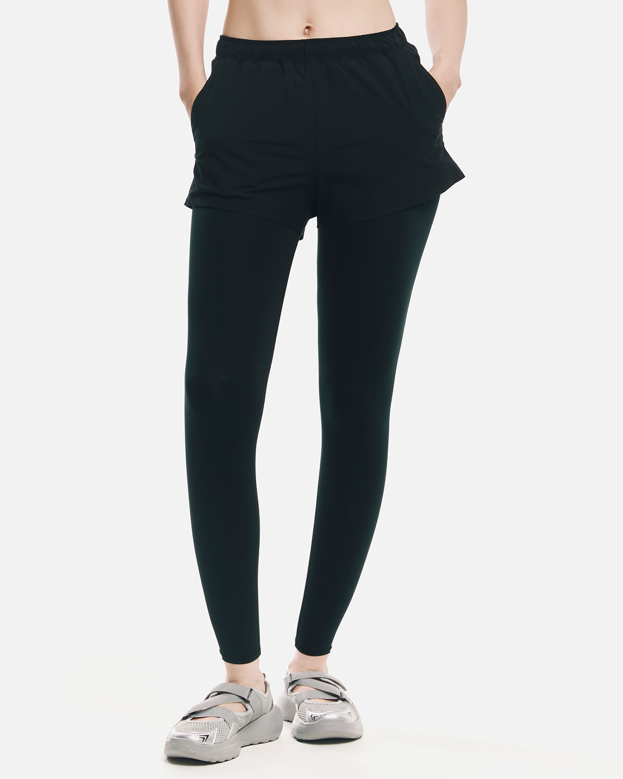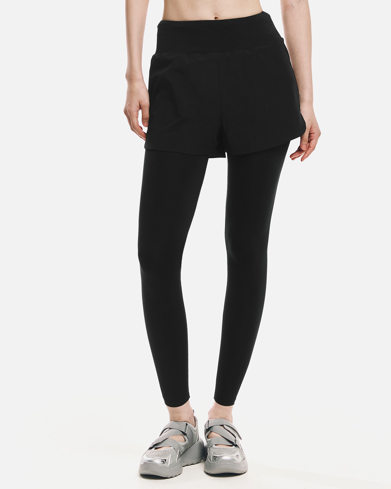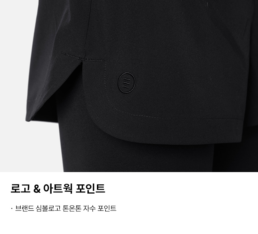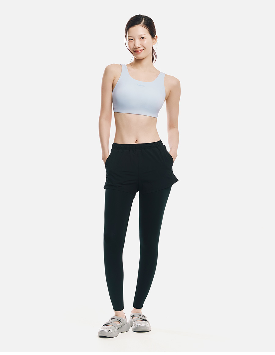 쇼츠 겉감: 폴리에스터 90%, 폴리우레탄 10% / 레깅스 겉감: 폴리에스터 82%, 폴리우레탄 18% / 레깅스 안감: 폴리에스터 73%, 폴리우레탄 27%