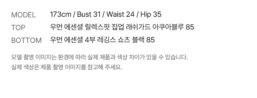• 신축성 있는 제품 (탱크탑, 브라탑, 브라패드, 레깅스, 비키니, 비키니팬츠, 이너웨어) 은 시착 시 상품의 가치가 훼손되어 반품이 불가합니다.