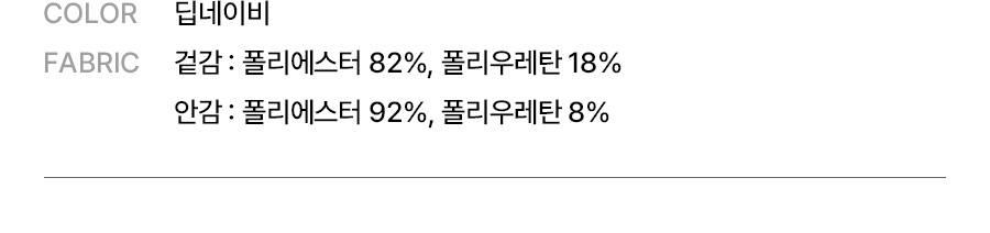 겉감: 폴리에스터 82%, 폴리우레탄 18% / 안감: 폴리에스터 92%, 폴리우레탄 8%