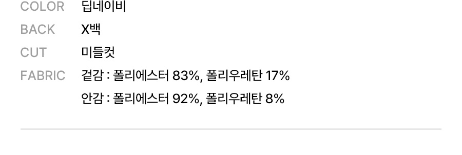 겉감: 폴리에스터 83%, 폴리우레탄 17% / 안감: 폴리에스터 92%, 폴리우레탄 8%