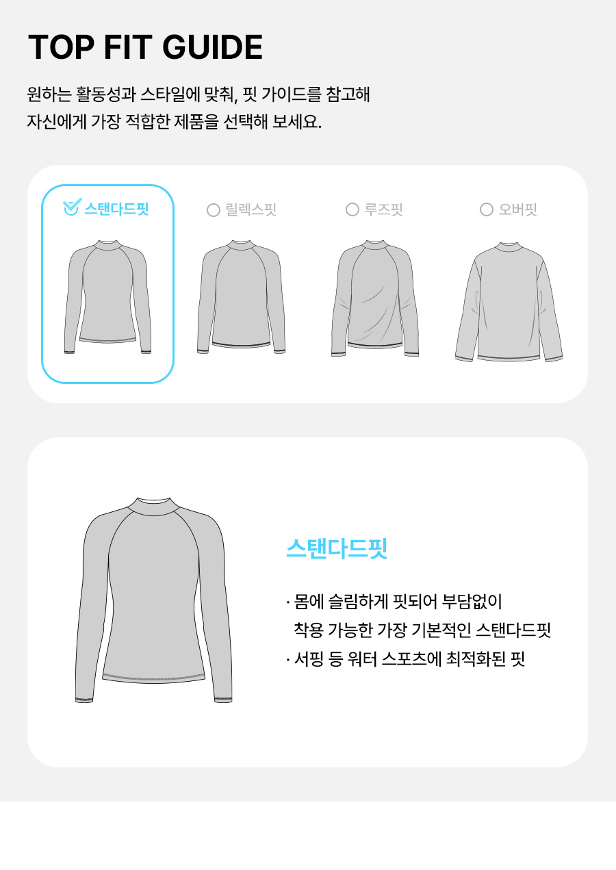 완벽히 건조된 래쉬가드는 지퍼백 혹은 공기가 통하지 않는 압축팩에 잘 넣어 보관해주세요.