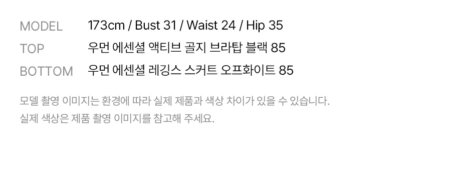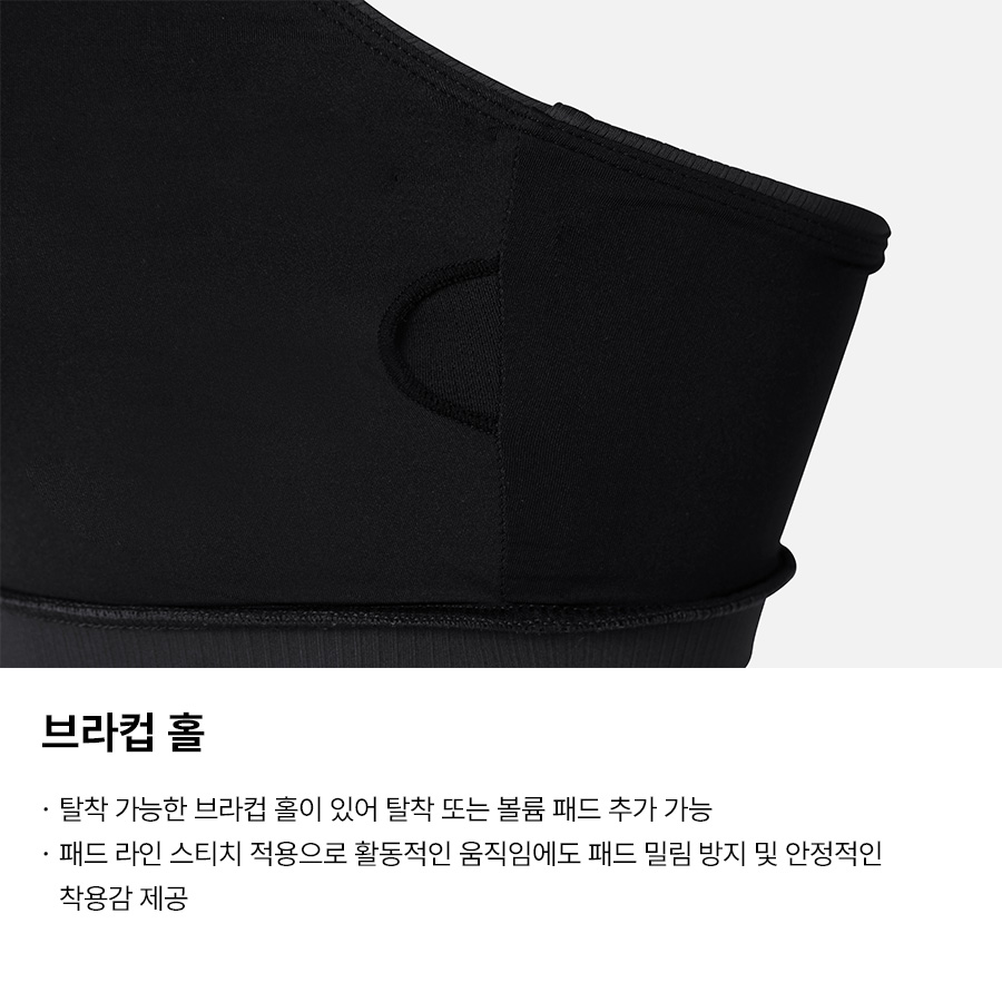 겉감: 폴리에스터 80%, 폴리우레탄 20% / 안감: 폴리에스터 73%, 폴리우레탄 27% / 패드 안감: 폴리에스터 91%, 폴리우레탄 9%