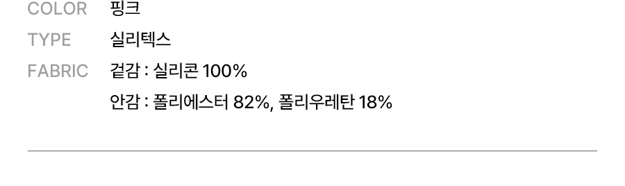 겉감: 실리콘 100% / 안감: 폴리에스터 82%, 폴리우레탄 18%