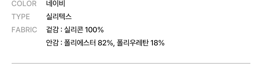 겉감: 실리콘 100% / 안감: 폴리에스터 82%, 폴리우레탄 18%