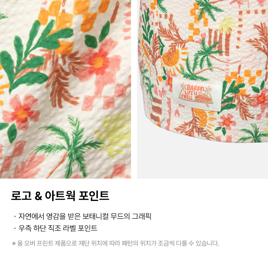 제품을 입고 바닷가나 수영장을 다녀오신 경우, 물 속의 화학성분 및 염분으로 인해 변색이 발생합니다. 땀으로 인한 부분 탈색이 발생할 수 있으니 가능한 한 빨리 수돗물로 세탁하시고 가볍게 두드려서 수분을 뺀 뒤, 직사광선을 피해 그늘에서 건조해주세요.