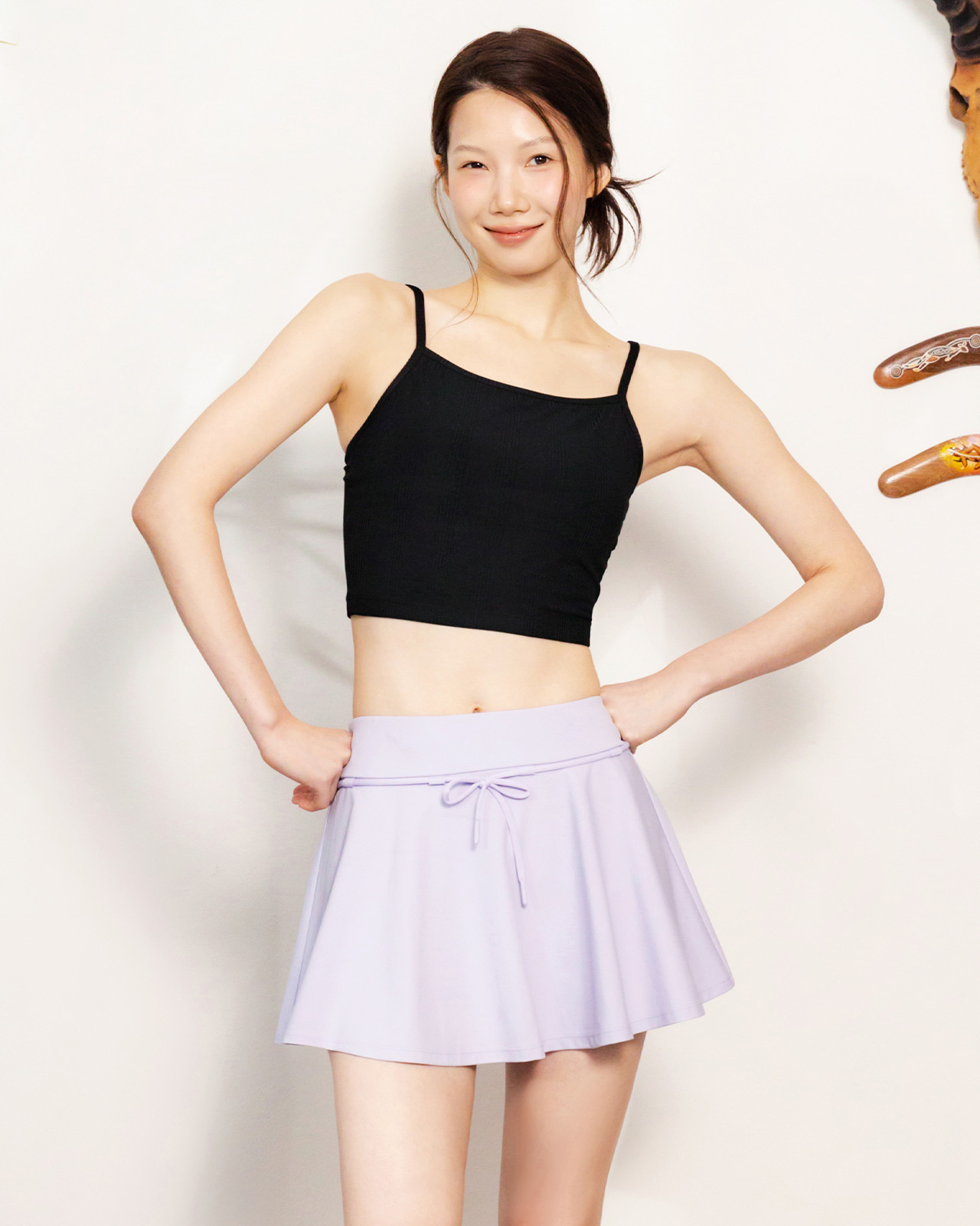 겉감: 폴리에스터 83%, 폴리우레탄 17% / 안감: 폴리에스터 73%, 폴리우레탄 27% / 패드 안감: 폴리에스터 91%, 폴리우레탄 9%