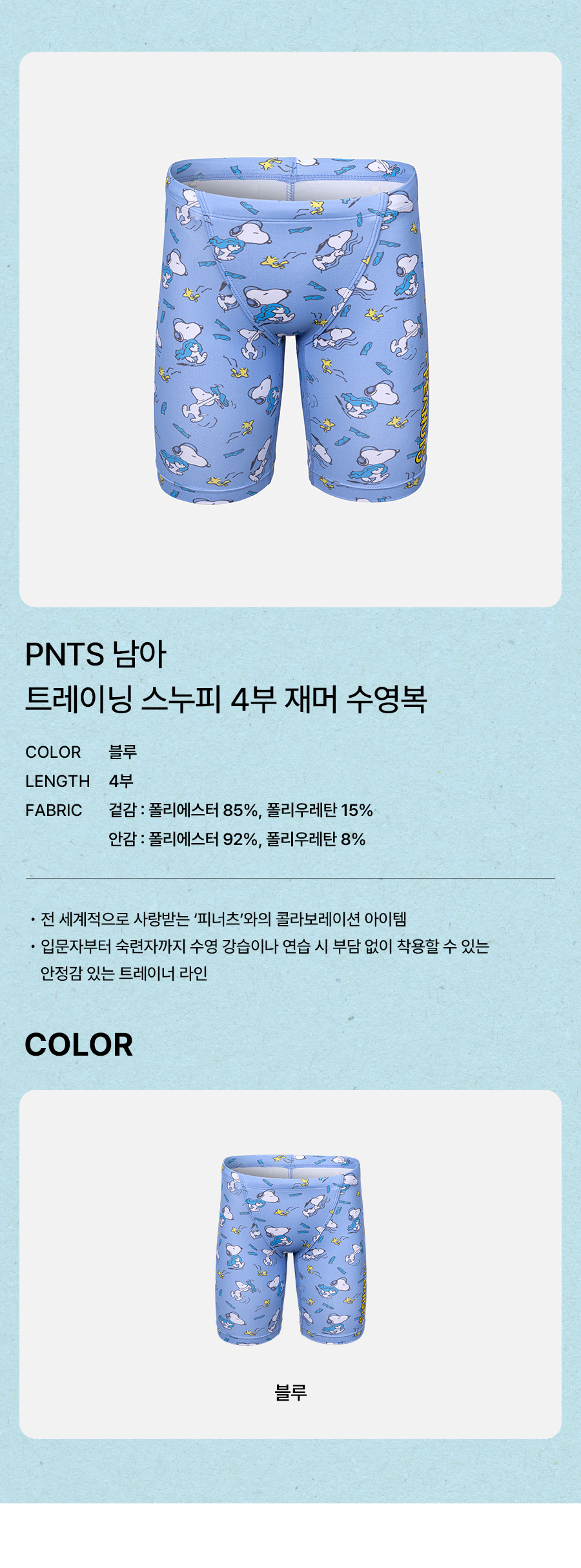 겉감: 폴리에스터 85%, 폴리우레탄 15% / 안감: 폴리에스터 92%, 폴리우레탄 8%