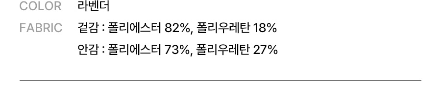 겉감: 폴리에스터 82%, 폴리우레탄 18% / 안감: 폴리에스터 73%, 폴리우레탄 27%