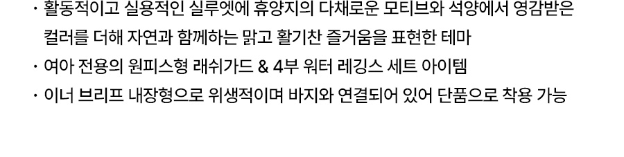 밝은 색상의 래쉬가드는 흙탕물에 오염이 되었을 경우 변색이 발생할 수 있으므로 주의 바랍니다.