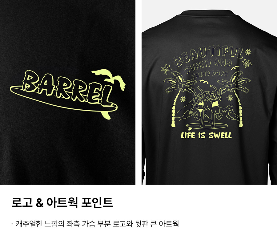 밝은 색상의 래쉬가드는 흙탕물에 오염이 되었을 경우 변색이 발생할 수 있으므로 주의 바랍니다.