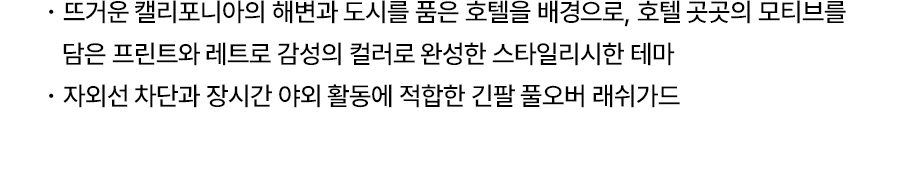 완벽히 건조된 래쉬가드는 지퍼백 혹은 공기가 통하지 않는 압축팩에 잘 넣어 보관해주세요.