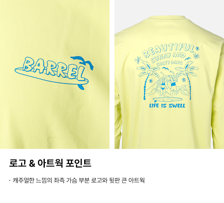밝은 색상의 래쉬가드는 흙탕물에 오염이 되었을 경우 변색이 발생할 수 있으므로 주의 바랍니다.