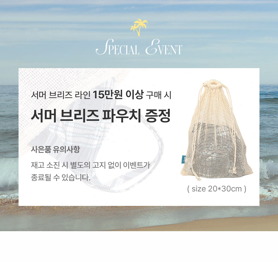 제품을 입고 바닷가나 수영장을 다녀오신 경우, 물 속의 화학성분 및 염분으로 인해 변색이 발생합니다. 땀으로 인한 부분 탈색이 발생할 수 있으니 가능한 한 빨리 수돗물로 세탁하시고 가볍게 두드려서 수분을 뺀 뒤, 직사광선을 피해 그늘에서 건조해주세요.