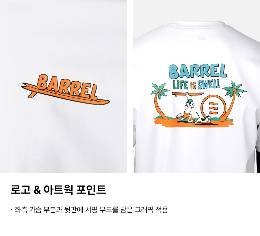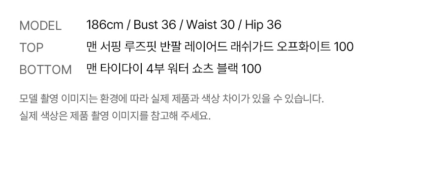 밝은 색상의 래쉬가드는 흙탕물에 오염이 되었을 경우 변색이 발생할 수 있으므로 주의 바랍니다.