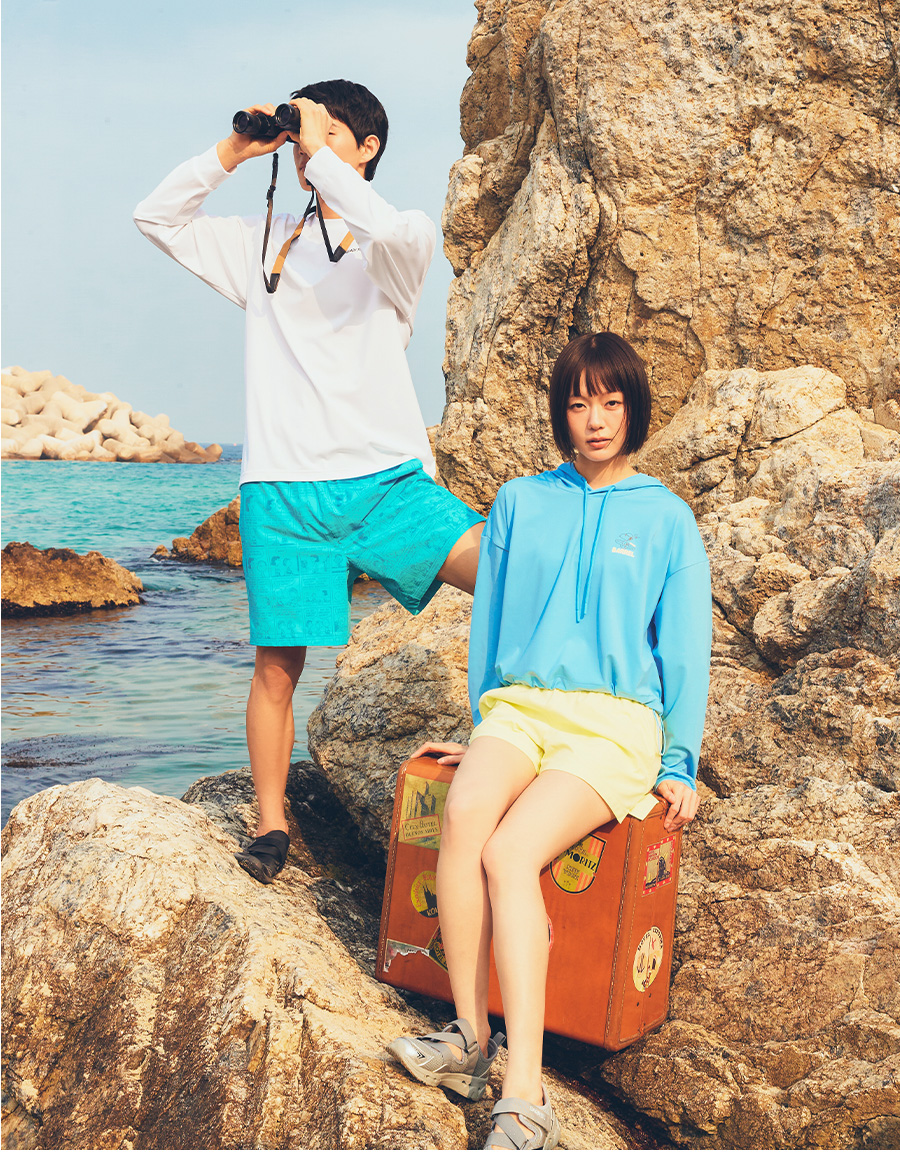 제품을 입고 바닷가나 수영장을 다녀오신 경우, 물 속의 화학성분 및 염분으로 인해 변색이 발생합니다. 땀으로 인한 부분 탈색이 발생할 수 있으니 가능한 한 빨리 수돗물로 세탁하시고 가볍게 두드려서 수분을 뺀 뒤, 직사광선을 피해 그늘에서 건조해주세요.