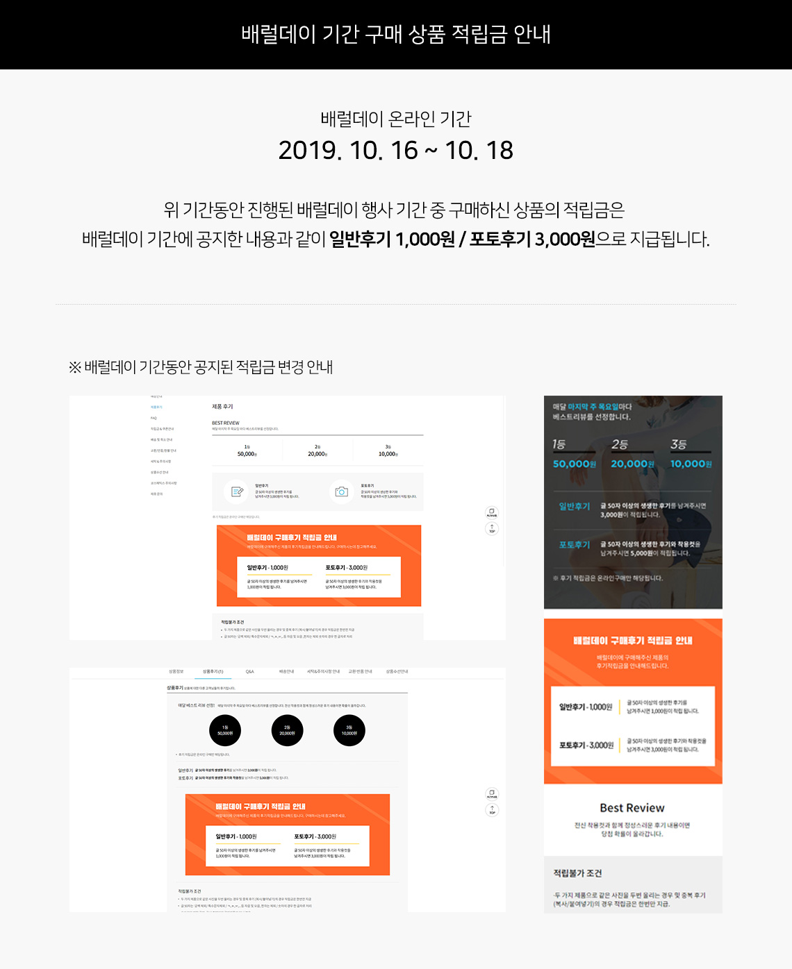 배럴데이 기간 구매 상품 후기 적립금 안내