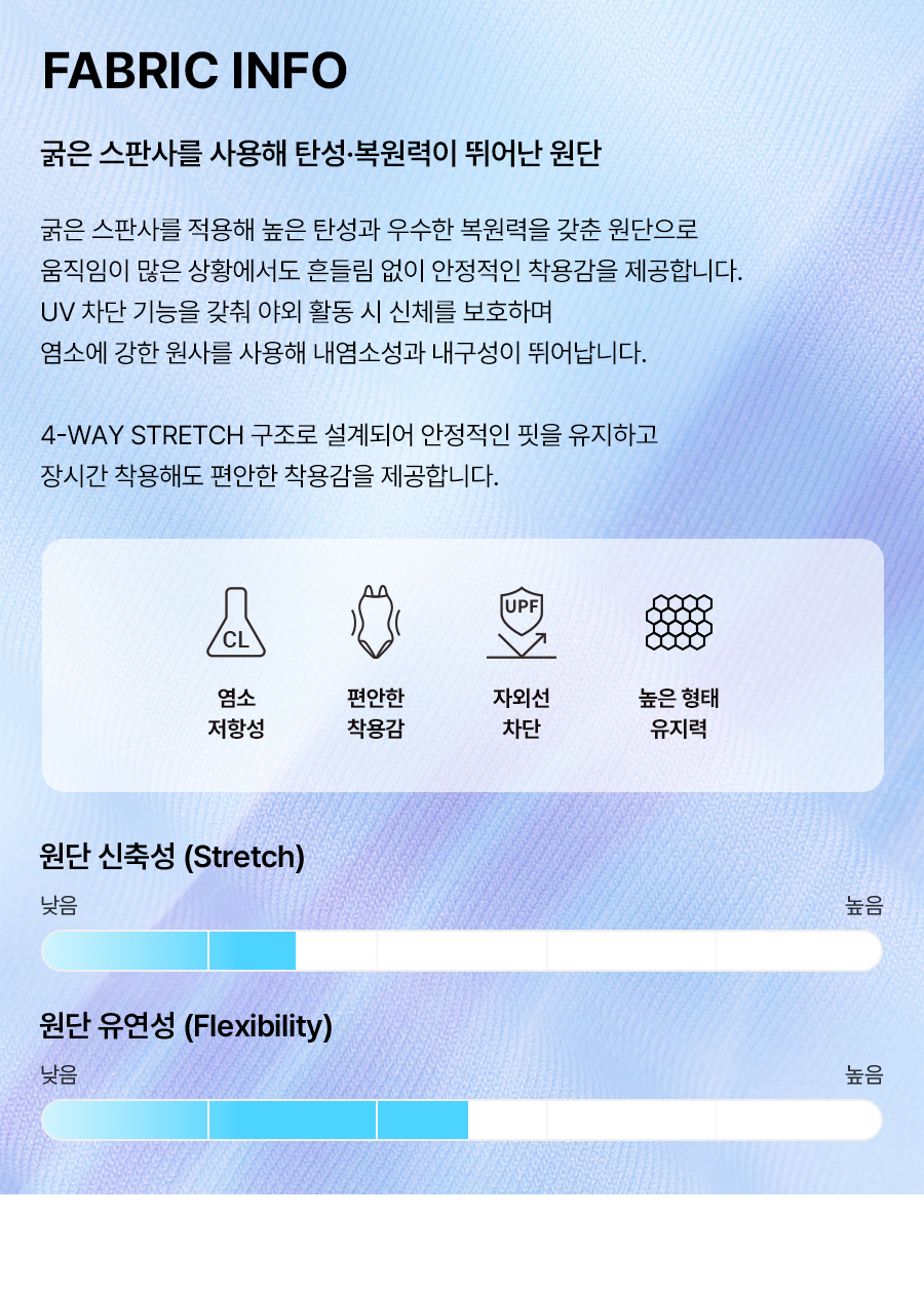 겉감: 폴리에스터 75%, 폴리우레탄 25% / 안감: 폴리에스터 92%, 폴리우레탄 8%