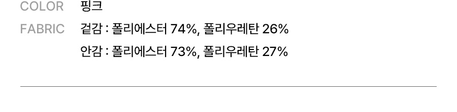 겉감: 폴리에스터 74%, 폴리우레탄 26% / 안감: 폴리에스터 73%, 폴리우레탄 27%